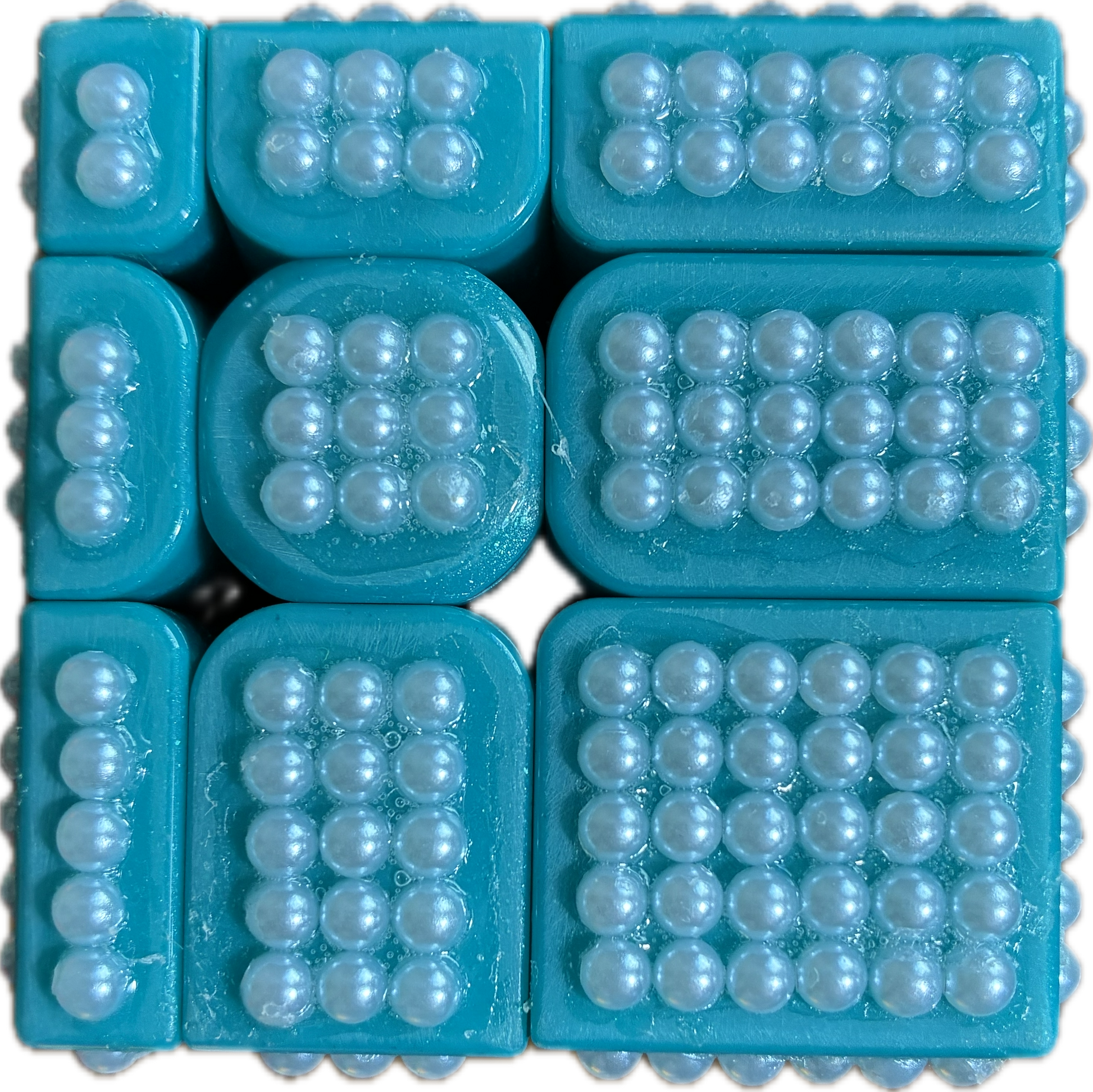 A modified mirror cube with added texture. Each piece is covered in pearls or rhinestones, giving it a distinct feel that makes it easier to solve by touch. The textured surface helps you tell piece sizes apart through the grid pattern — adding both style and function.